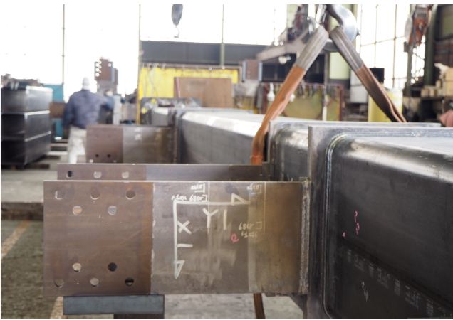 建設鉄骨工事の専門企業として成長を続ける中で、私たちは品質の均一化と生産性の最大化という永遠の課題に挑み続けています。現在の体制は、最新鋭の設備導入による徹底した品質保証体制の確立に集約されています。具体的には、孔明け作業の高速化・高精度化を実現した全自動ドリルマシン、溶接品質を安定させ構造物の安全性を極限まで高める溶接ロボット、そして強力ボルト使用部・塗装面下地処理を行うショットブラストなど、最先端の機械を積極的に導入。これにより、人手不足という社会的な課題を解消しつつ、全ての製品で高品質基準を達成することを可能にしました。さらに重要なのは、各工程で社内検査を義務付け、作業時間の「見える化」を行うことで、工場全体の製作工程管理を容易にし、安定した納期を保証している点です。